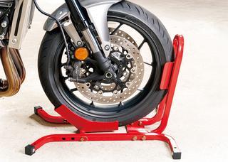 モトトモ「フロントホイールクランプ」使用レビュー|メンテナンス時やトランポ積載時に便利な軽量チョック